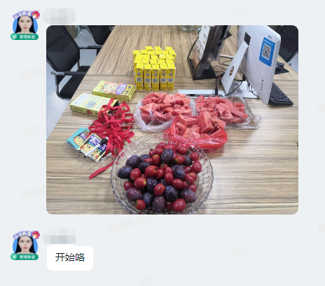 業務員們專心致志的工作著,好像誰都沒注意到來回走動的人事小姐姐,直到公司群里的那張照片和那句:開始咯!